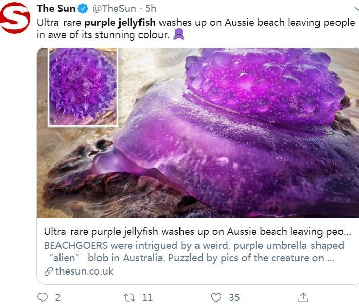 一位女士表示:“恶心,外星人”,她认为,这只水母之所以显现出这令人印象深刻的紫色,是因为“(拜伦湾附近)所有使用的化学物质所致——千万不要碰它”。