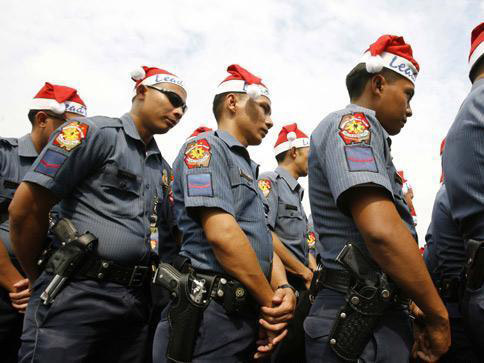 在菲律宾,治安警察都是一身圣诞老人的装扮。