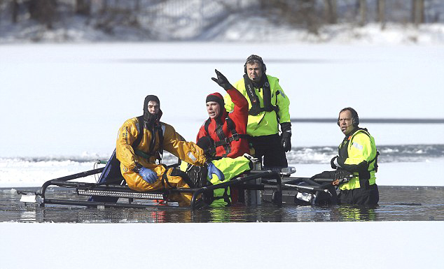 美国新泽西州一只小鹿被困在结冰湖面上长达24个小时,最终获救。