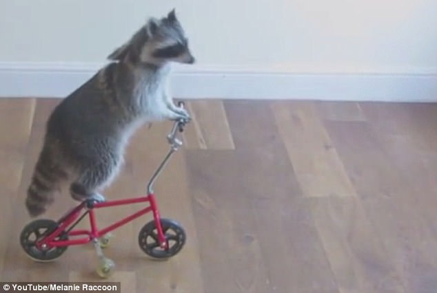 一只名叫梅拉妮(Melanie)的北美浣熊在主人的指导下超乎想象地学会了骑自行车。