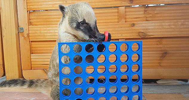在德国,主人教会一只叫森尼(Sunny)的小浣熊玩四子棋。