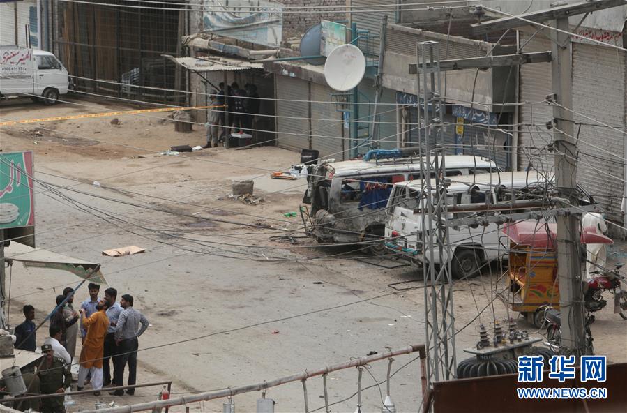 4月5日,在巴基斯坦拉合尔,安全人员聚集在爆炸袭击现场。据巴基斯坦媒体5日报道,巴东部旁遮普省拉合尔市当天上午发生一起自杀式爆炸袭击,已造成至少6人死亡、15人受伤。新华社/路透