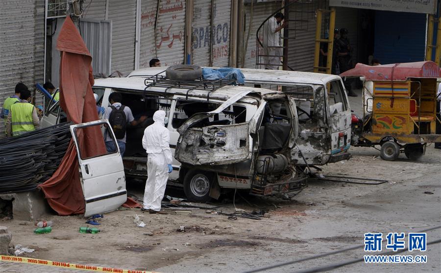 4月5日,在巴基斯坦拉合尔,调查人员在爆炸袭击现场检查损毁的车辆。据巴基斯坦媒体5日报道,巴东部旁遮普省拉合尔市当天上午发生一起自杀式爆炸袭击,已造成至少6人死亡、15人受伤。新华社/美联