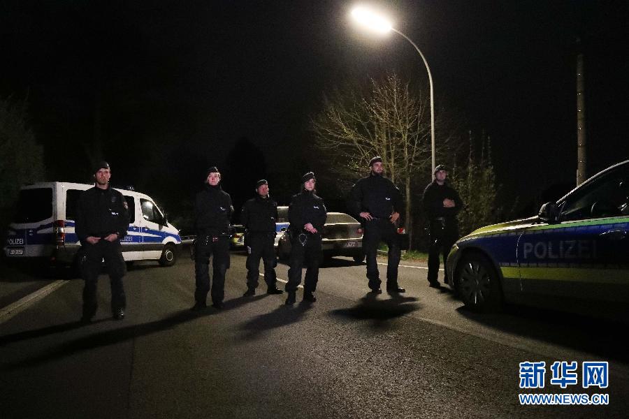 4月11日,在德国多特蒙德,警察在多特蒙德队大巴车遭袭现场附近警戒。据德国媒体报道,德国多特蒙德足球队大巴车上11日发生爆炸,已造成1人受伤。新华社发(乌尔里希·胡夫纳格尔摄)