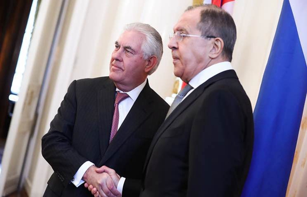 中新网4月13日电 据俄罗斯卫星网报道,12日,俄罗斯外长拉夫罗夫会见了美国国务卿蒂勒森。俄美两国重申了反恐这一共同目标,并称必须尽一切努力恢复两国信任,双方还商讨了叙利亚问题等。会谈后,俄总统普京在克里姆林宫接见了蒂勒森。
