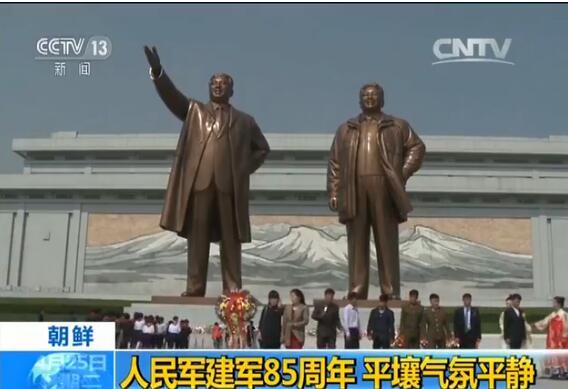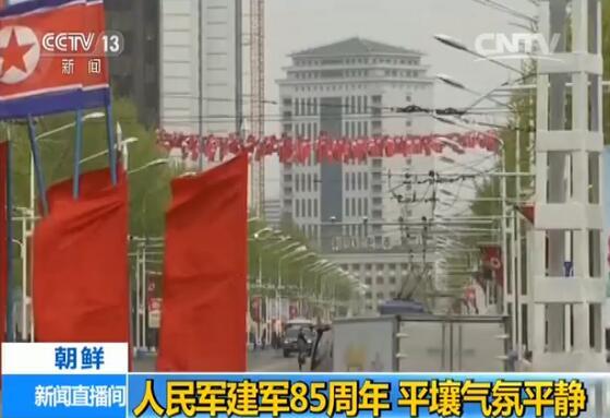 央视记者赵淼:4月25日是朝鲜人民军建军85周年纪念日,朝鲜国内还是节日的气氛。主要街道上旌旗招展,路边也贴满了关于建军的招贴画。因为是节日,朝鲜民众25日会放假一天。街面上很平静,没有太多的车辆,也没有大量的行人。因为平壤最近新开了一条黎明大街,所以我们能看到一些搬家的人。此外,还有很多小学生在老师的带领下,去参加集体活动。