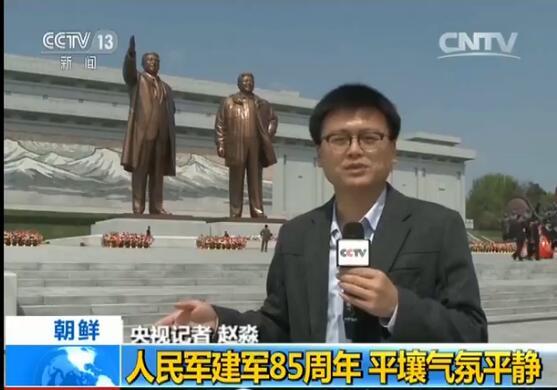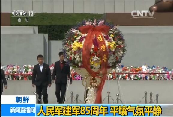 央视记者赵淼:我现在所在的位置是朝鲜平壤的地标性建筑万寿台的铜像,以朝鲜最高领导人金正恩名义献上的花环矗立在铜像前广场的中间位置。在每一个国家节日,朝鲜民众都会来到这里向领袖的铜像献花表达敬意。这次的建军节也是如此。