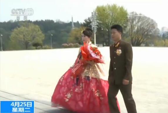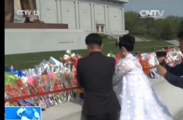 央视记者赵淼:此外,在结婚之前向领袖铜像献花是朝鲜独有的风俗。在建军节,有很多新人来到这里献花、录影、拍照。从我们的感受上来说,整体上,在本次的建军节,平壤还是处于一种放松的节日气氛。