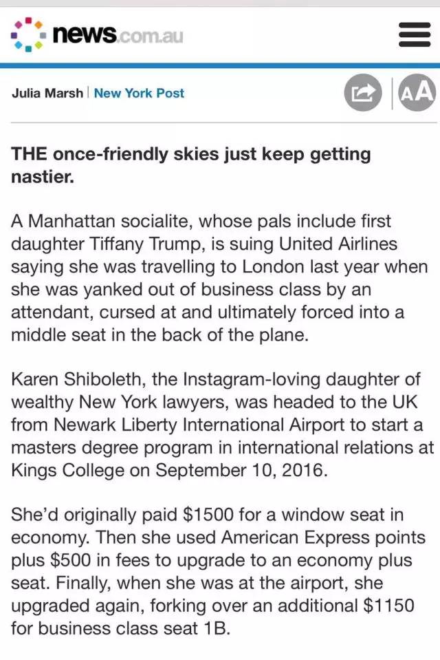 于是在“遭受委屈”之后,这位名媛选择起诉美联航。。