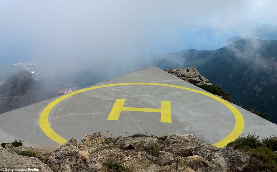 这个直升机停机坪建在了一个非常危险的地方,前方就是万丈悬崖。