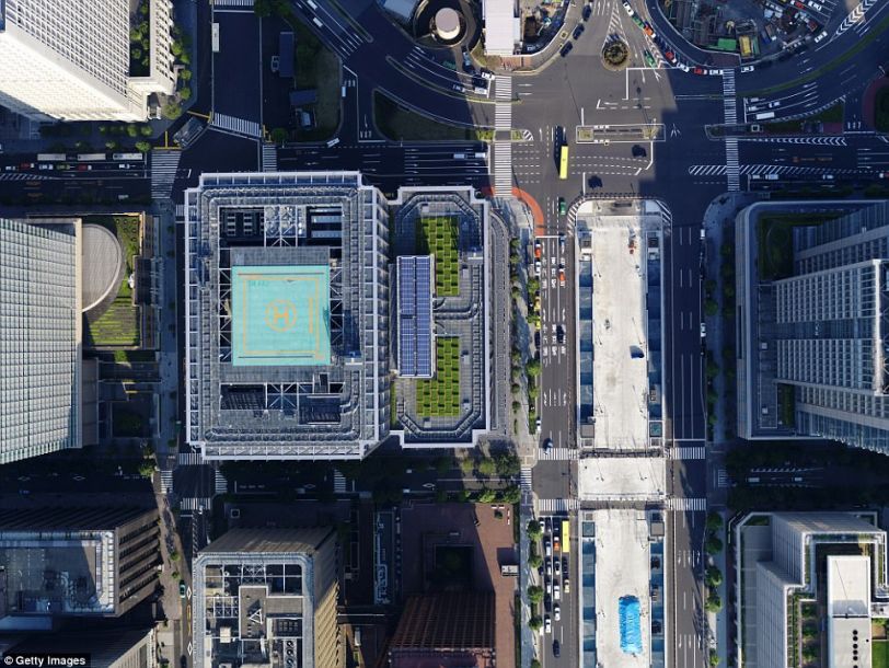 在东京许多建筑物的屋顶上都有停机坪,日本首都的停机坪密度很高,但是大多数都是闲置的。