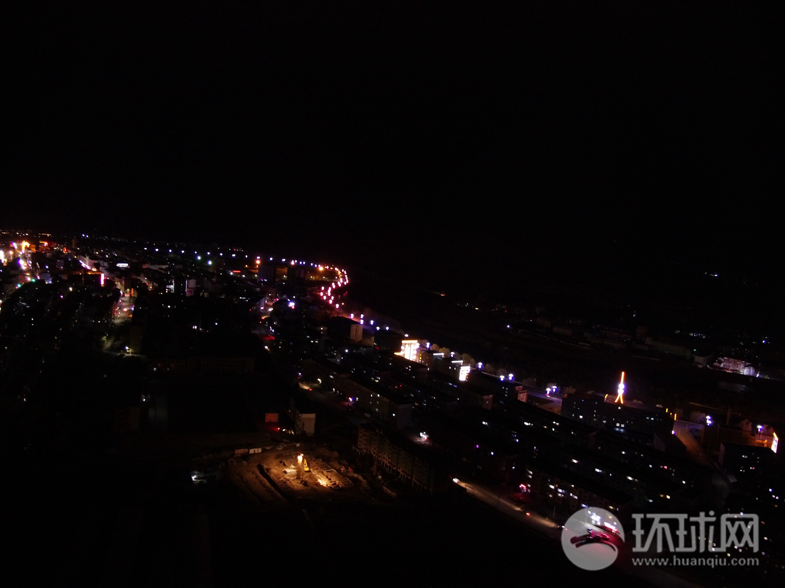 07从环球网记者拍摄的图片中可以看到,鸭绿江将整个画面分为两部分。一是夜晚中灯火阑珊的中国长白县,二是漆黑占更多比重的朝鲜第三大城市惠山市。(摄/环球网无人机频道赵汗青,4月27日晚)