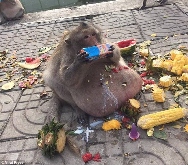 泰国猴子胖成猪 疑因游客投食过度