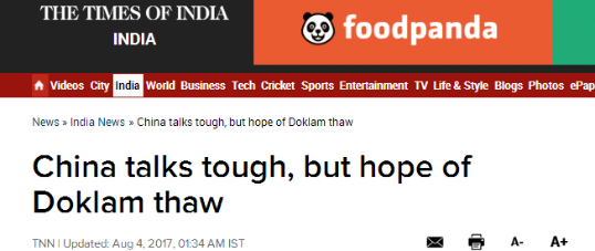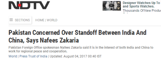 新德里电视台甚至在4日凌晨搬出了中国的老友巴基斯坦,借巴基斯坦外交部发言人的话来向中国“示和”。该电视台大篇幅刊登了巴基斯坦对中印边境对峙看法的文章,称巴基斯坦非常关注中印边境对峙。