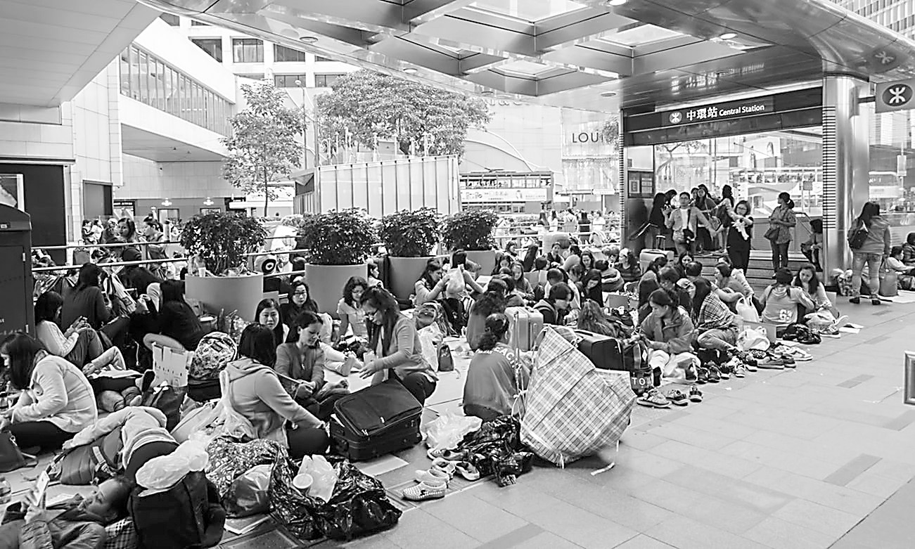 每到休息日,包括菲佣在内的外佣“占据”市中心公共区域进行消遣,已成为港人熟悉的场景。