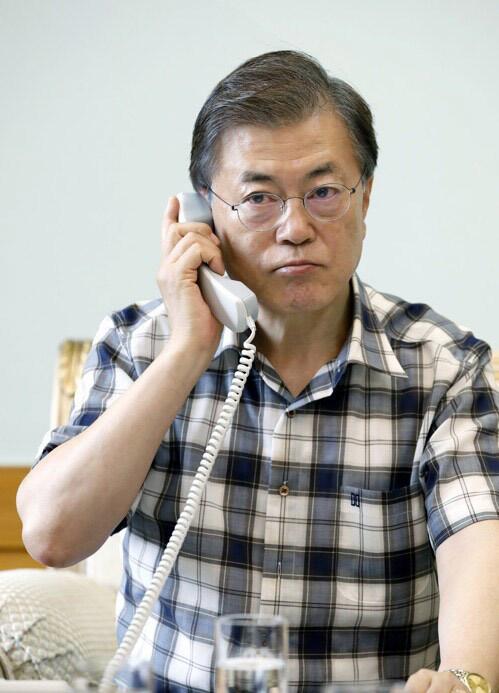 【环球网综合报道】据韩国《中央日报》8月9日报道,韩国总统文在寅8月7日在与美国总统特朗普通电话时穿了一件蓝白相间的格纹短袖衬衫。目前这件衬衫在网上已经售罄。