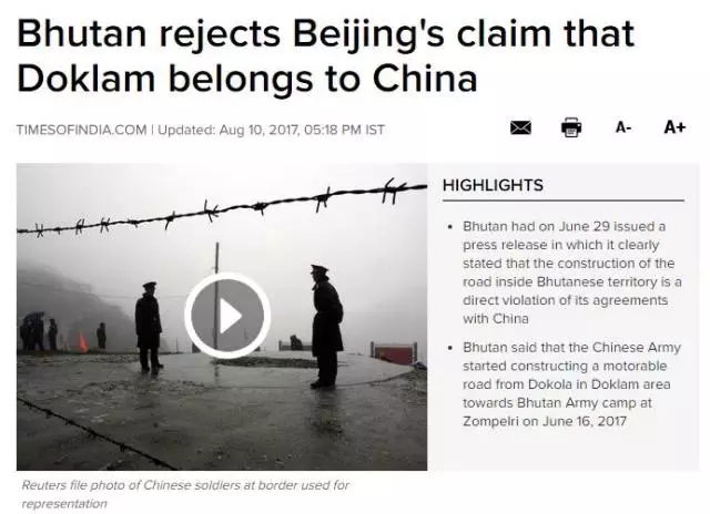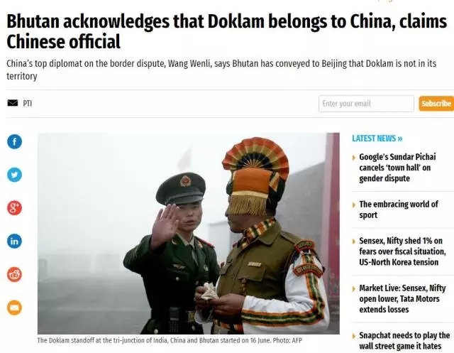得到回复的印度媒体纷纷报道:不丹驳斥了中国外交官关于不丹承认洞朗属于中国的这一说法。
