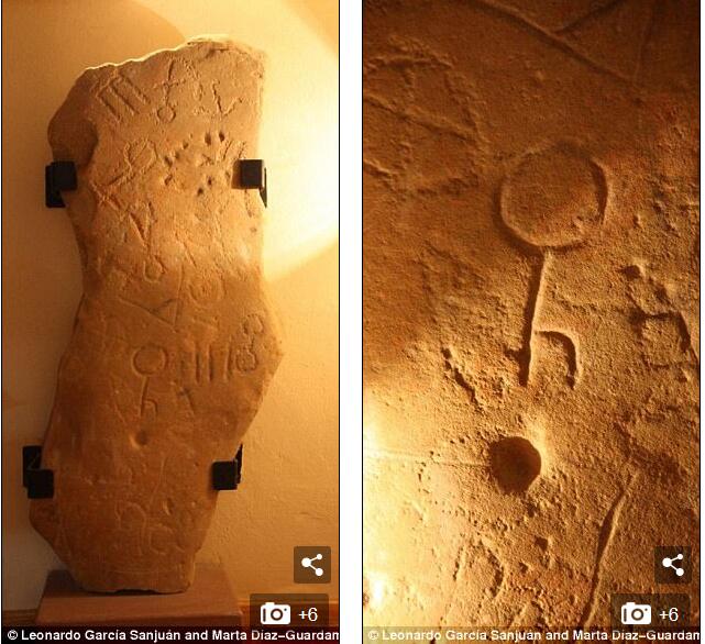 这块石板被称为蒙托罗石碑,它高1.5米,宽0.85米。研究表明文字刻于公元前9至公元前3世纪。Sanjuán博士认为是这很可能是伊比利亚最早的碑文。有关刻字来源有两个假设。其一,石碑由当地居民刻成。这些居民很可能并不识字,而是根据记忆在石碑上刻下了有所见闻的文字符号,而自己并不理解它们的意思。这表明伊比利亚居民很早就与外界有所接触,很可能是与地中海东部的腓尼基人有所往来。第二个假设是石碑刻于铁器时代晚期,罗马帝国扩张时期。汉尼拔将军率领迦太基人占领了伊比利亚,直到公元前206年被罗马打败。罗马和迦太基的军兵来源纷杂,这就解释了为何石碑上有这么多种不同文字。然而,在更多相关文物出土之前,蒙托罗石碑的真正含义会一直是个谜。