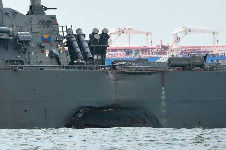 【环球网报道记者张骜】美国海军导弹驱逐舰“约翰?麦凯恩”号8月21日清晨在新加坡附近与一艘油轮商船发生碰撞,导致5名船员受伤、10余人失踪。随后,美国海军下令舰队在全球暂停行动,进行评估,检查漏洞。对于美军舰三个月之内在亚洲发生两起碰撞的事件,法新社8月22日援引海军专家的话分析称,这令人质疑美国海军在亚洲是否过度扩张,美国需重新考量“自由航行”行动。