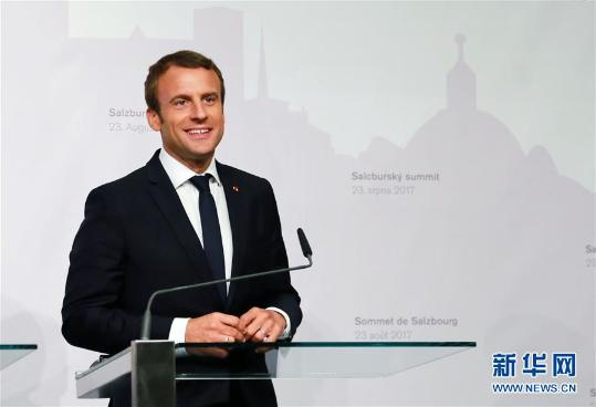 8月23日,法国总统马克龙在奥地利萨尔茨堡出席新闻发布会。法国总统马克龙23日在奥地利萨尔茨堡呼吁改革欧盟劳务派遣制度,他认为欧盟允许廉价劳动力涌入高收入国并且不遵守缴纳当地社保类费用相关规定的做法“违背了欧洲精神”。法国总统马克龙当天与奥地利、捷克、斯洛伐克领导人共同探讨了如何改革劳务派遣制度。他表示,目前在此议题方面的改革取得了一些实质进展。新华社记者潘旭摄