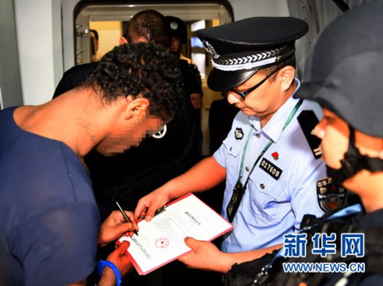 8月25日凌晨,中国警方在广州白云国际机场将美籍严重暴力犯罪红通逃犯弗格森移交美方,由美国司法部法警局押解回国。新华社记者卢汉欣摄