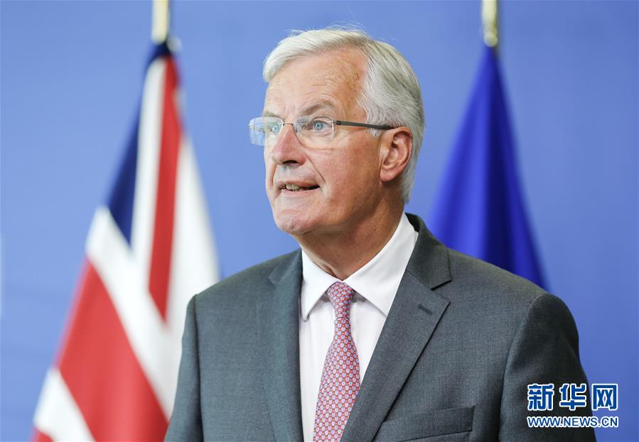 8月28日,在比利时首都布鲁塞尔,欧盟英国“脱欧”首席谈判代表巴尼耶在谈判开始前对媒体讲话。欧盟与英国第三轮“脱欧”谈判28日下午在布鲁塞尔欧盟总部开启,双方将围绕“分手费”、欧盟公民权利以及北爱尔兰边界安排继续讨价还价。新华社记者叶平凡摄