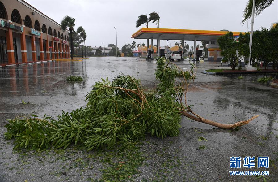 9月10日,在美国佛罗里达州迈阿密,树枝被强风吹断后散落在街道上。飓风“艾尔玛”于当地时间10日上午登陆美国佛罗里达群岛,受其影响,佛州东部城市迈阿密当日出现强风暴雨天气。新华社记者 殷博古 摄