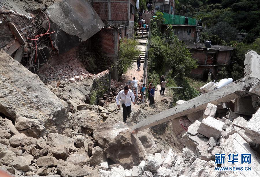 9月19日,在墨西哥莫雷洛斯州库埃纳瓦卡市,一名男子走过在地震中损毁的建筑废墟。新华社发(马尔加里托·佩雷斯摄)