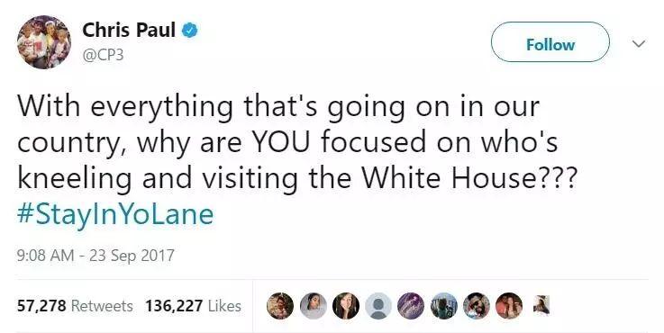 而且,在怼完NBA的球员之后,特朗普干脆还一不做二不休,将枪口又转向美国国家橄榄球联盟(NFL)那个升国旗时没有起立的橄榄球运动员。