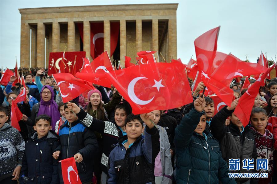 10月29日,在土耳其首都安卡拉凯末尔陵,人们参加庆祝典礼。当日,土耳其首都安卡拉举行活动,庆祝共和国成立94周年。新华社发(穆斯塔法·卡亚摄)
