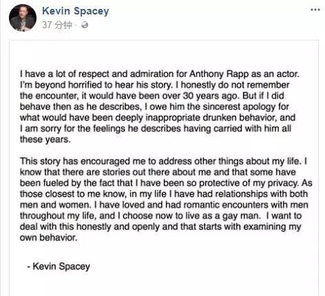 这篇报道发布后,凯文·史派西随即在个人社交媒体账号上发表声明: