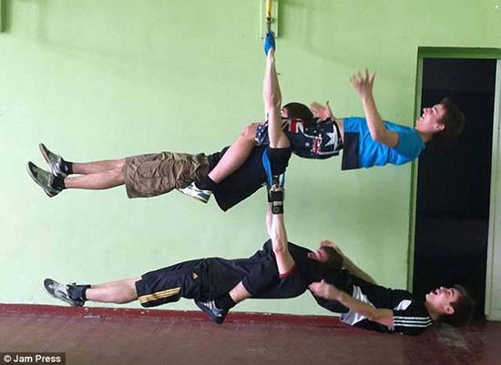这些不怕死的人在热气球的边缘玩击剑。