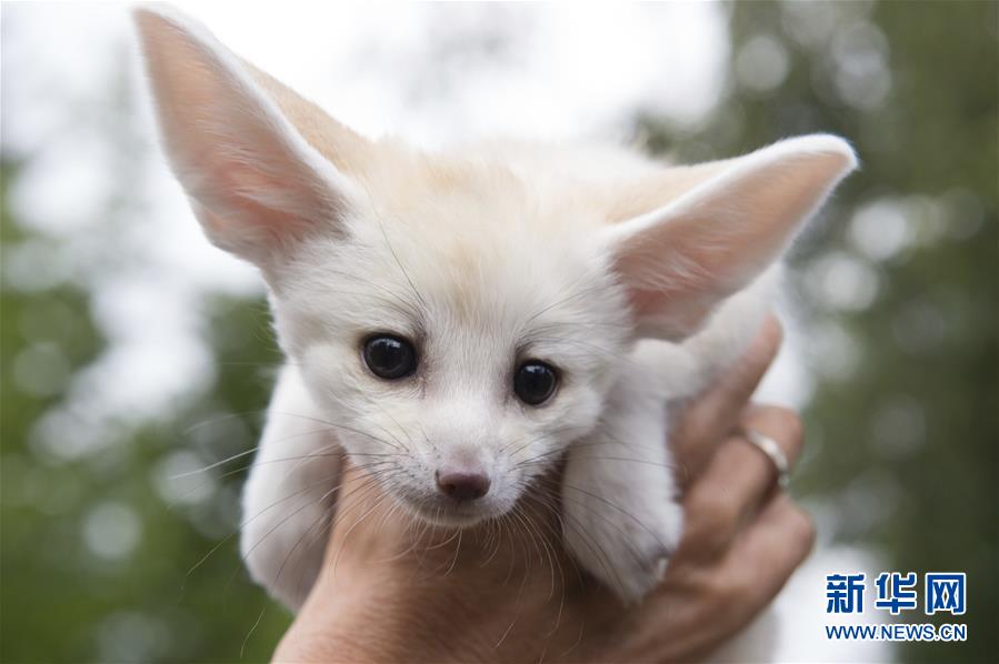 这是2017年8月16日,在德国奥厄动物园,一名饲养员捧起一只耳廓狐幼崽。新华社/美联