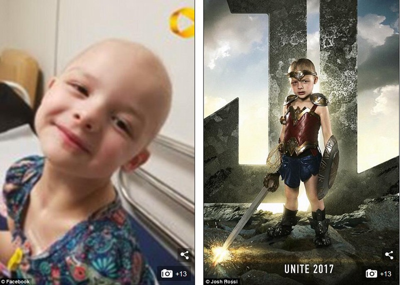 3岁的索菲患有一种罕见的眼癌。照片拍摄时,她刚刚进行过放射治疗,还在流鼻血。摄影师说她是真正的神奇女侠。
