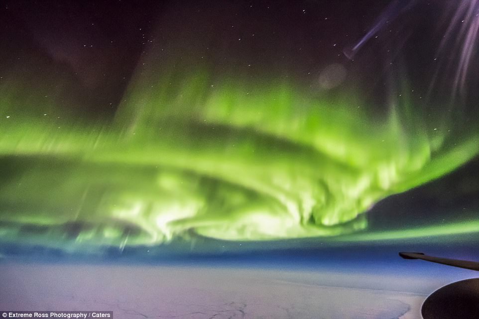 最炫酷的自拍 飞行员机舱中偶遇绚丽极光