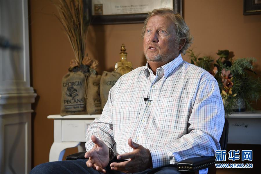 7月10日,在美国佐治亚州奥西拉,山核桃种植户兰迪·哈德逊在自己的公司内接受新华社记者采访。作为对美国贸易保护主义行径的反击,中国被迫对包括山核桃在内的部分美国商品加征关税。哈德逊说,美国的贸易保护主义举措让他感到忧心和愤怒,他担心自己过去20年的心血可能毁于一旦。新华社记者杨承霖摄