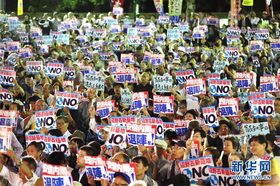9月19日,在日本东京,民众手持标语参加集会。当日,近5000人在东京日比谷公园内参加反对新安保法集会。新华社记者杜潇逸摄