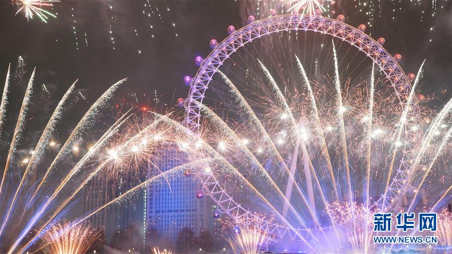 1月1日,英国伦敦举行烟花表演迎接新年。新华社发(桂子摄)