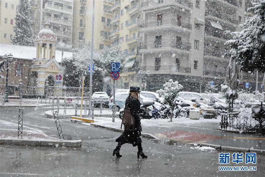 1月4日,在希腊塞萨洛尼基,一名女子从飘雪的街头走过。希腊消防部门6日表示,寒流带来的恶劣天气在希腊已造成3人死亡。新年伊始,寒流给希腊全国大部地区带来大风、降温和雨雪天气,中部和北部地区气温降至零度以下并出现强降雪天气,造成部分地区道路封闭、大面积航班延误及轮渡停运。新华社发(莱夫特里斯·帕察里斯摄)