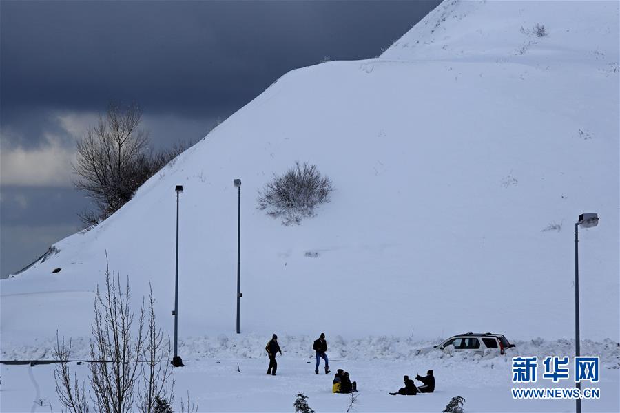 1月9日,在黎巴嫩首都贝鲁特以东的山区,人们在雪地上玩耍。黎巴嫩自6日起遭遇极端暴风雨雪天气。统计数据显示,黎巴嫩全国各地已报告581起医疗急救事故和703次疏散和转移行动。新华社发(比拉尔·贾维希摄)