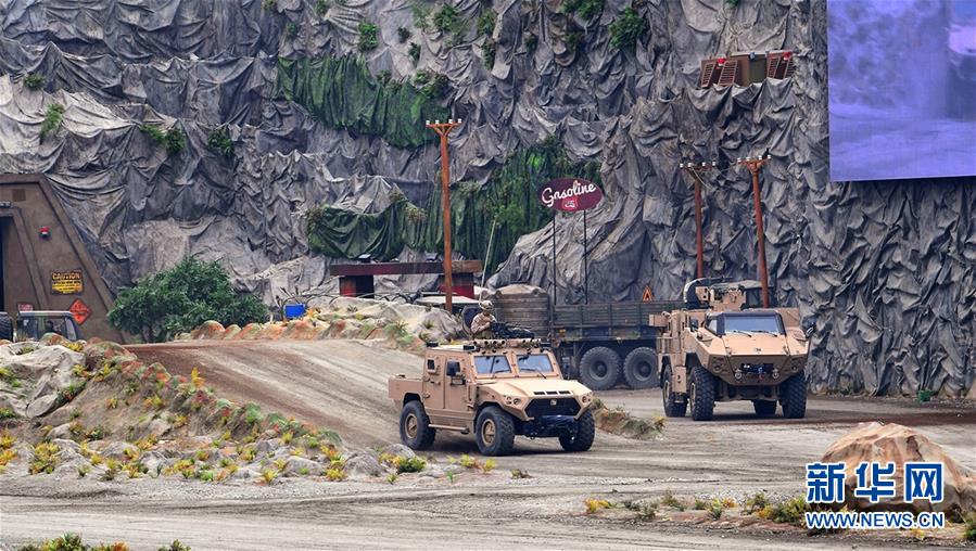 这是2月17日在阿联酋首都阿布扎比国际防务展开幕式上拍摄的军事演习。为期5天的第14届阿布扎比国际防务展17日在阿联酋首都阿布扎比国家展览中心开幕。新华社发(穆罕默德·巴达尔丁摄)