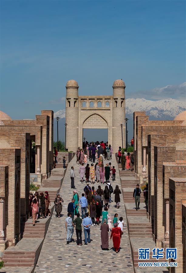 4月14日,人们在塔吉克斯坦首都杜尚别以西的吉萨尔城堡参观。新华社记者白雪骐摄