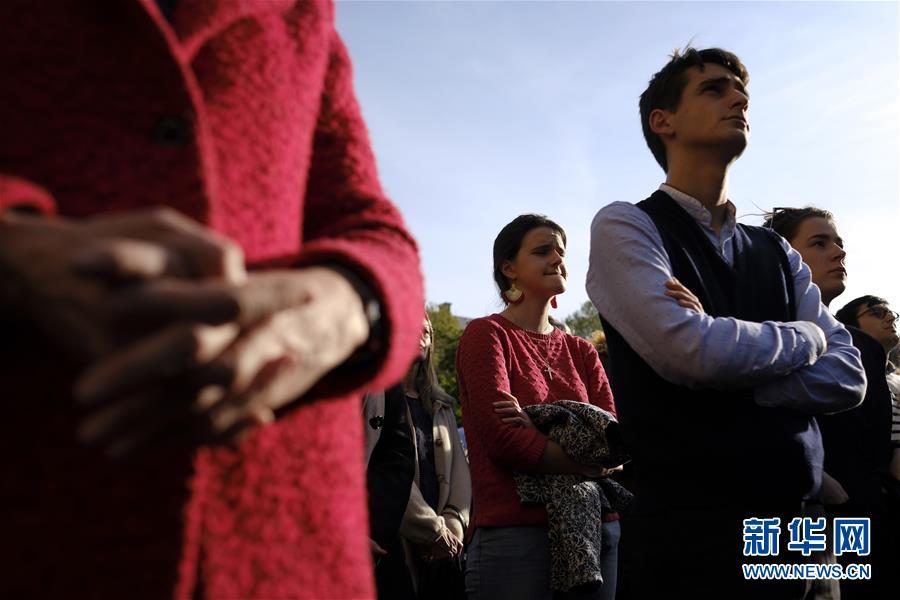 4月17日,在法国巴黎,人们聚集在一起为巴黎圣母院祈福。法国负责调查巴黎圣母院大火的检察官雷米·海茨17日说,目前火灾原因主要指向“事故因素”。初步调查显示,倒塌的塔尖下方可能是最初的起火点。巴黎圣母院15日突发火灾,圣母院的屋顶和塔尖被烧毁,但主体建筑得以保存。新华社发(亚历山大·卡曼摄)