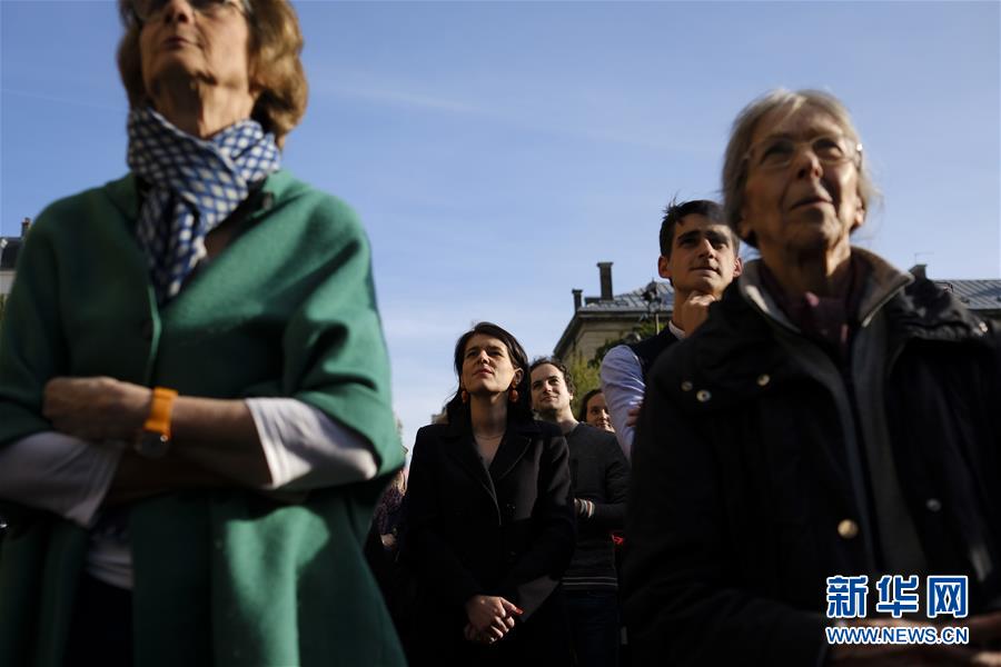 4月17日,在法国巴黎,人们聚集在一起为巴黎圣母院祈福。法国负责调查巴黎圣母院大火的检察官雷米·海茨17日说,目前火灾原因主要指向“事故因素”。初步调查显示,倒塌的塔尖下方可能是最初的起火点。巴黎圣母院15日突发火灾,圣母院的屋顶和塔尖被烧毁,但主体建筑得以保存。新华社发(亚历山大·卡曼摄)
