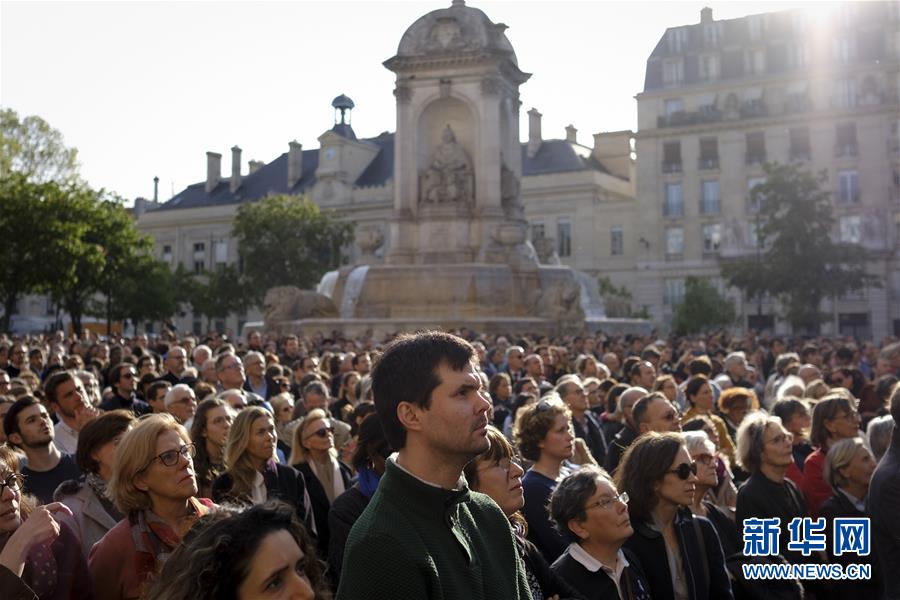 4月17日,在法国巴黎,人们聚集在一起为巴黎圣母院祈福。法国负责调查巴黎圣母院大火的检察官雷米·海茨17日说,目前火灾原因主要指向“事故因素”。初步调查显示,倒塌的塔尖下方可能是最初的起火点。巴黎圣母院15日突发火灾,圣母院的屋顶和塔尖被烧毁,但主体建筑得以保存。新华社发(亚历山大·卡曼摄)