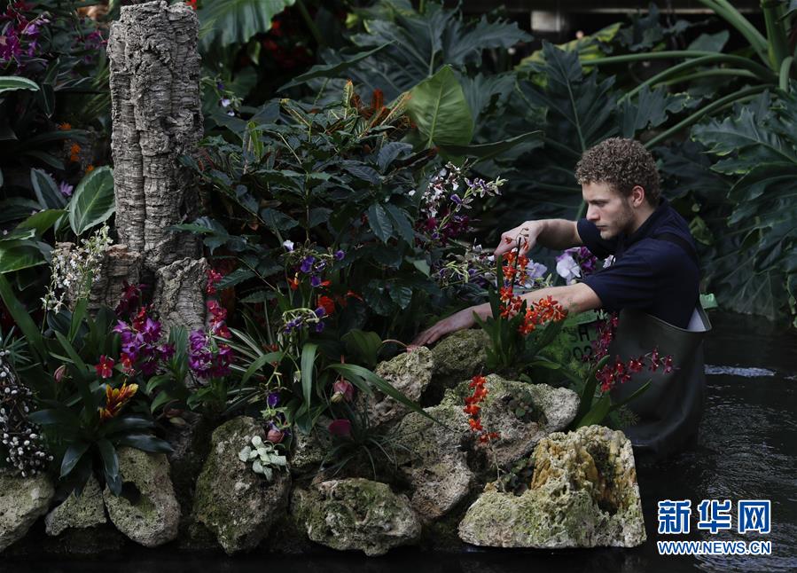 英国哲学家培根曾有言:园艺之事,是人生乐趣之最纯洁者。在一花一木之中,人们觉察到大自然万物生长、时节交替的讯息。莳花弄草,满足了人们的审美需求,将诗情画意赋予平淡的日常生活,让人们获得精神上的极大满足。大家都热爱花草,也热爱园艺,沉醉于姹紫嫣红开遍,也乐于自己动手,享受劳动带来的最纯朴的快乐。“小径四时花,随分逍遥,真闲却、香车风马”,这种人与自然和谐共处的氛围何等逍遥快活! 2019年中国北京世界园艺博览会(简称北京世园会)将于4月至10月举行。本届世园会将有约110个国家和国际组织、120多个非官方参展方参展,将刷新世园会参展方历史纪录。 2019年2月7日,在英国伦敦邱园(皇家植物园),工作人员布置兰花展展场。新华社记者韩岩摄