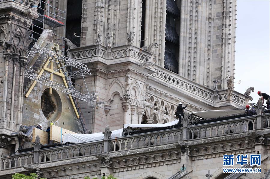 4月24日,在法国巴黎,工作人员为巴黎圣母院搭建防雨篷布。巴黎本周迎来降雨天气。为避免雨水对受损的巴黎圣母院造成不利影响,法国政府紧急采用篷布遮盖的方式防雨,防止圣母院遭到二次破坏。据法国媒体报道说,巴黎圣母院建筑面临坍塌隐患。一方面,15日爆发的大火对圣母院造成了巨大损害,整个建筑中存在多个坍塌点。另一方面,在灭火过程中,消防人员不得不持续对圣母院用水降温,这也在一定程度上对建筑造成破坏。新华社记者高静摄