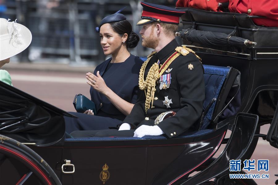 6月8日,在英国伦敦,英国哈里王子与妻子梅根乘马车离开白金汉宫。当日,英国伦敦举行盛大庆典,庆祝英女王93岁官方生日。