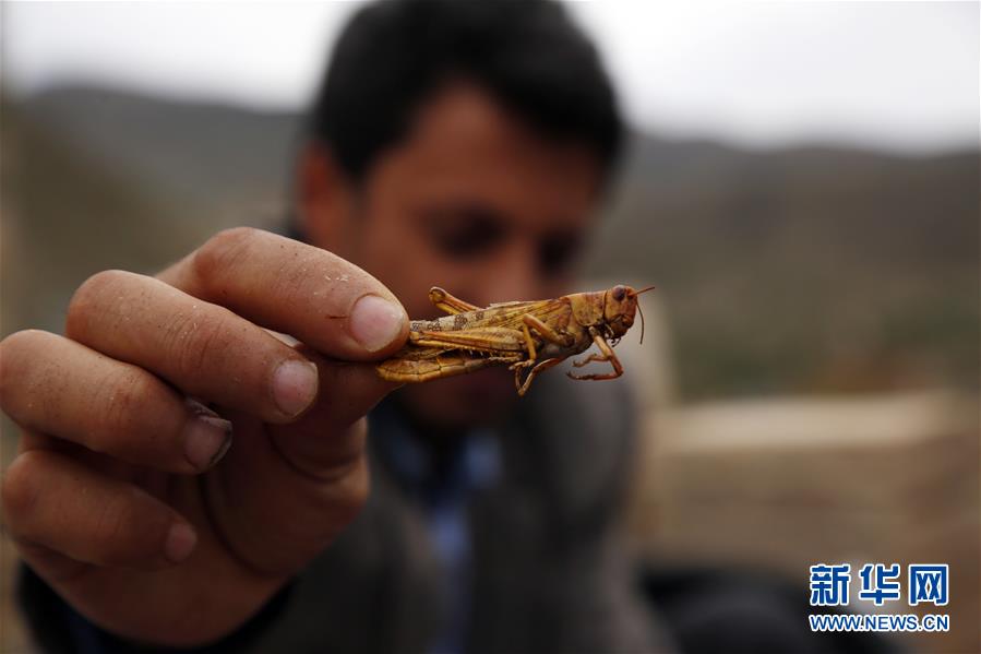 6月24日,在也门萨那,当地人展示准备食用的蝗虫。当地有关部门日前发起一项消灭蝗虫行动,以应对该国近来出现的蝗虫灾害。目前的蝗灾已经对也门农业造成严重危害。新华社发(穆罕默德摄)