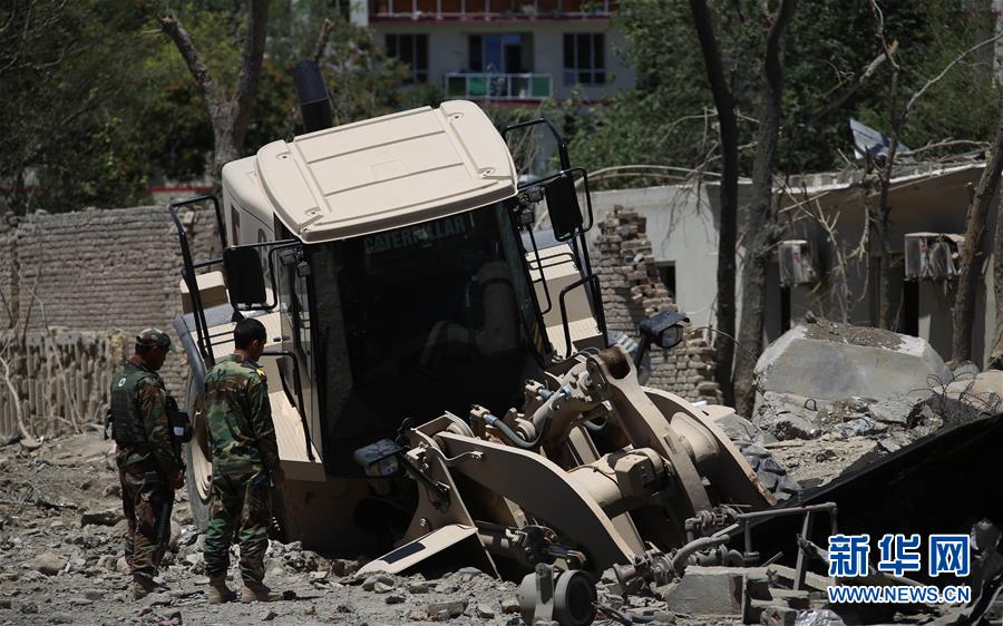 7月2日,在阿富汗首都喀布尔第16警区,士兵检查爆炸袭击现场。阿富汗首都喀布尔市中心7月1日发生汽车炸弹袭击,造成至少34人死亡、68人受伤。新华社发(拉赫马特·阿里扎达摄)